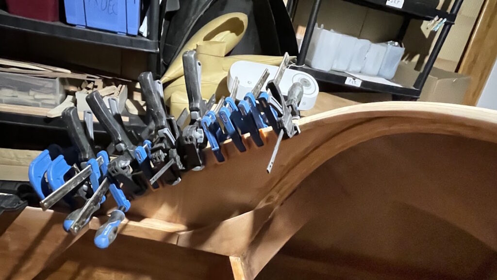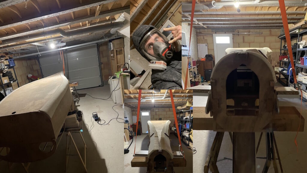 L’hiver arrive doucement, la température descend et ça va commencer de devenir pénible de travailler dans le garage. Par chance il n’est pas humide et pas trop mal isolé, mais ça n’est pas une super période pour poncer.. J’ai déplacé une partie de l’atelier dans mon bureau (qui fait 25m2) pour finir certaines pièces.